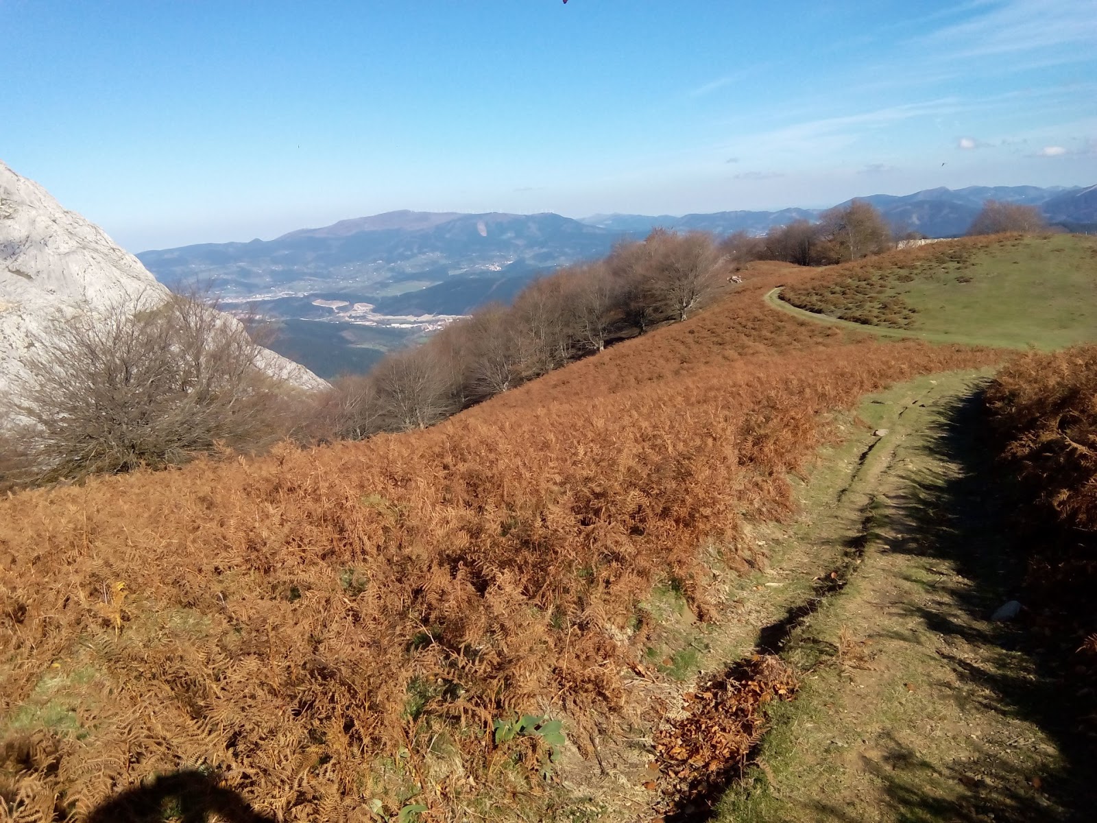 El sendero se hace mas evidente y se sigue hacia el collado de Larrano - Ermita de Santa Bárbara.